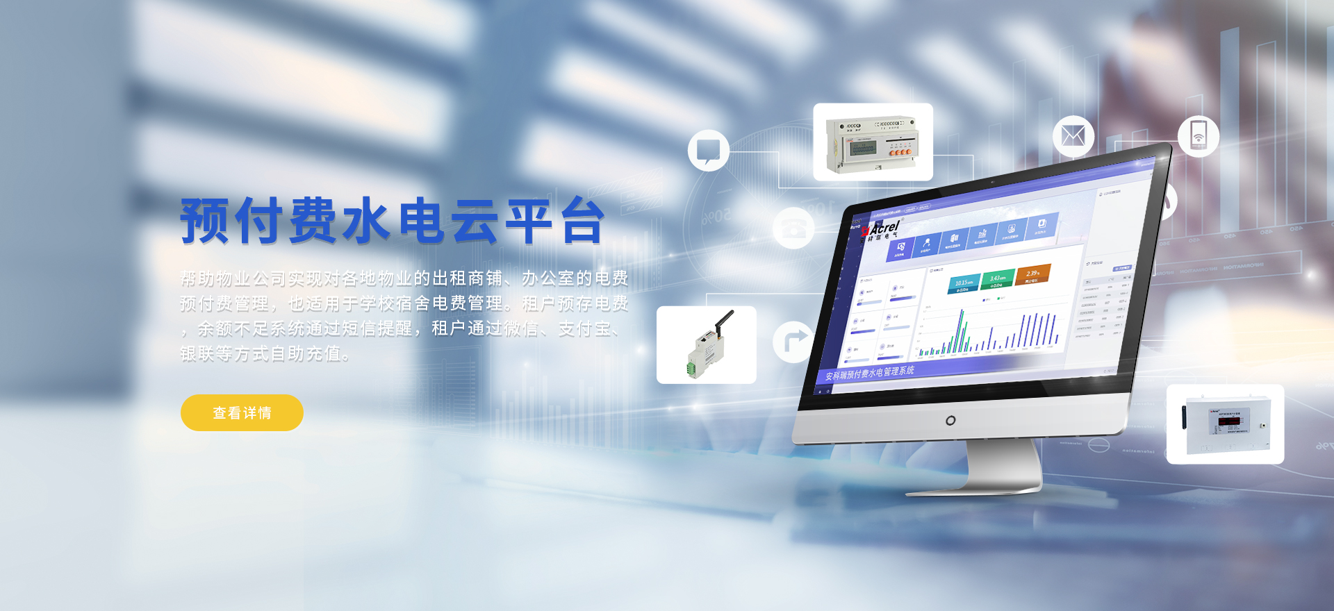 安科瑞提供的解決方案包括Acrel-EIoT能源物聯網云平臺、變電所運維云平臺、安全用電管理云平臺、環保用電監管云平臺、智慧消防云平臺、能源管理云平臺、工業企業能源管控平臺、遠程預付費云平臺、餐飲油煙監管云平臺電動汽車/電瓶車充電樁收費管理云平臺、電力監控/無線測溫系統、電能質量治理系統、電氣火災監控系統、消防設備電源監控系統防火門監控系統、應急照明和疏散指示系統、智能照明控制系統、醫用隔離電源絕緣監測系統等,幫助用戶實現能源智能化、可視化、精細化管理,提高用能效率和用能安全,為企業節能降耗和實現能源數字化建設提供數據服務。